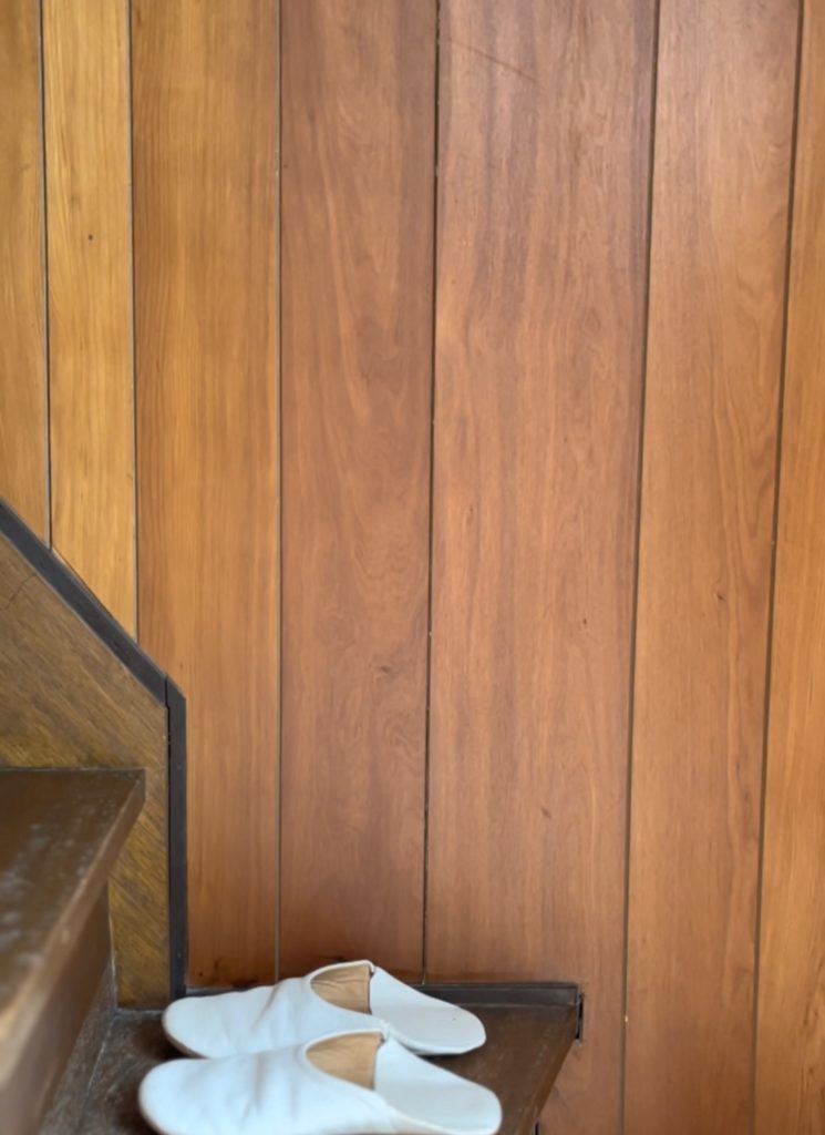 ▲17年目になる智頭杉の壁板。無塗装。深みがまし、かがやいている。